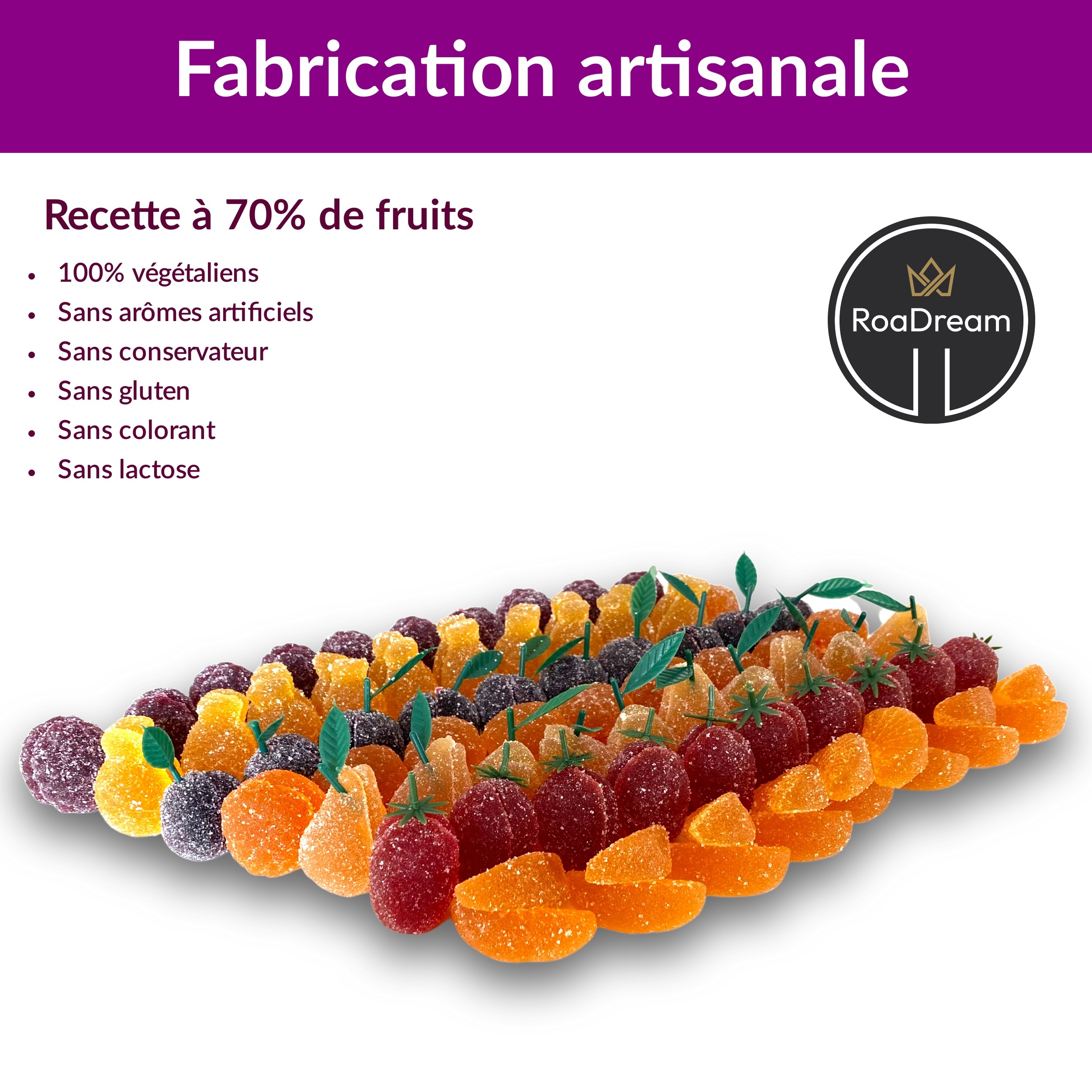 ? FABRICATION ARTISANALE qui conviendra aux végétaliens car nos pâtes de fruits sont sans gluten, sans colorant, sans arôme artificiel, sans lactose et sans conservateur. 70 % en teneur de fruits naturels ce qui rend cette gourmandise si délicieuse (Le pourcentage de fruits définit l’intensité du goût et de la couleur). Idéal également pour les plus sportifs d'entre vous pour un resucrage plaisir pendant ou après l'effort
